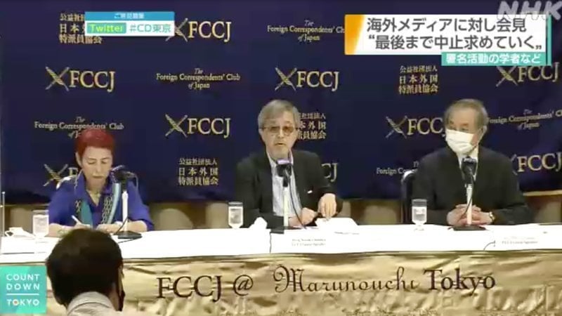 NHK ニュース:「最後まで五輪中止求める」学者らが海外メディアに対し会見