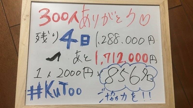 一口2000円として、あと856名の方にご協力いただけると目標達成です!最後まで諦めません。すでにご支援いただいた皆さまありがとうございます!