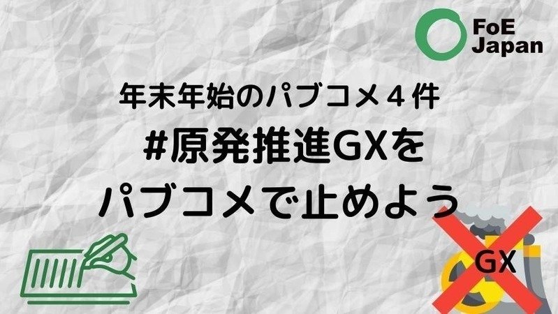 ▼年末年始のパブコメ4件―― #原発推進GXをパブコメで止めよう