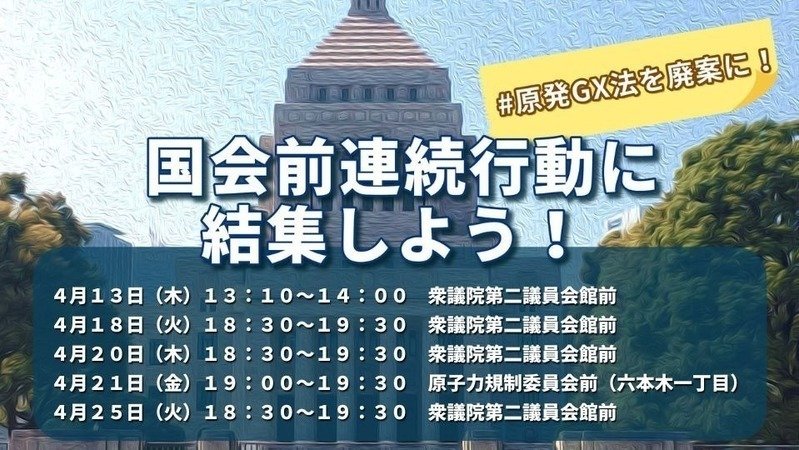 このたび、この原発GX法の廃案を求める連続アクションを行います。ぜひご参集ください!