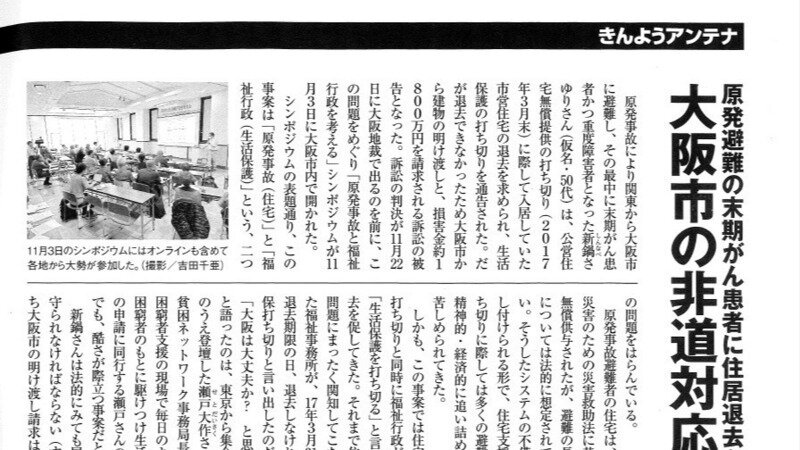 Petition update原発事故避難者を大阪市営住宅から追い出さず命と人権を守るために公正な判決を求めます。2024年11月15日_吉田千亜さんの記事が週刊金曜日に!_原発事故と福祉行政を考えるシンポジウム