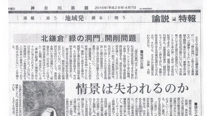 <北鎌倉「緑の洞門」開削問題>として、