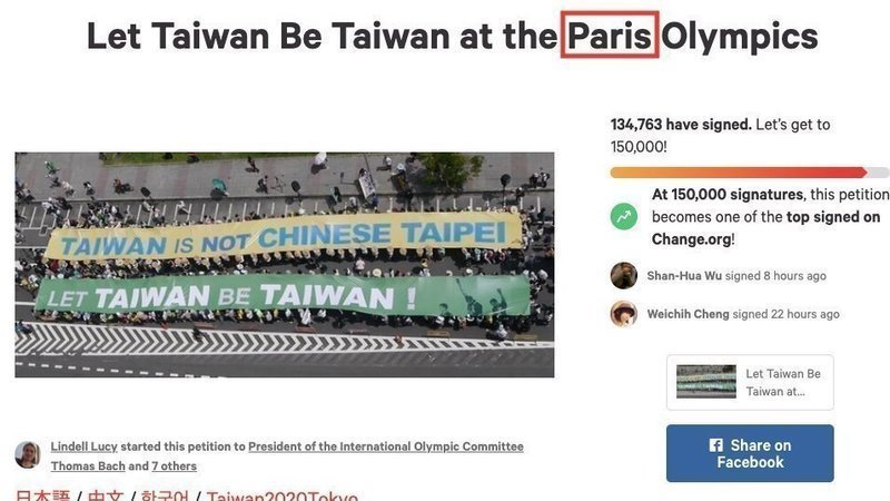 Update: "Tokyo" has been replaced with "Paris" in the petition title. The addressees have also been revised to include: