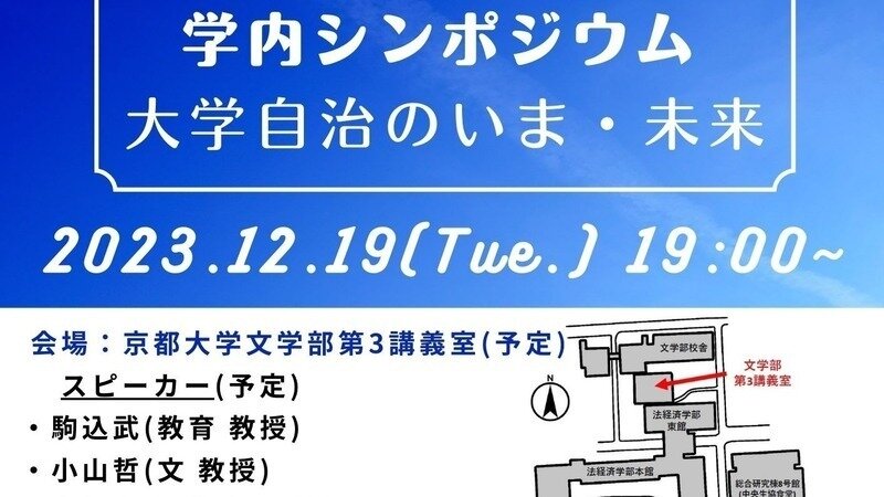 12月19日(火)夜に、吉田寮自治会が主催する学内シンポジウム「大学自治のいま・未来」が開かれます。