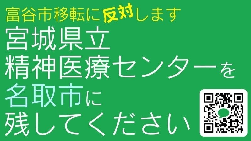 私は県立精神医療センターの富谷市移転をどうしても止めたいと思っています