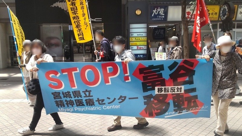 勾当台公園に集まった後、他の団体の方の後について「宮城県立精神医療センター富谷市移転反対」の