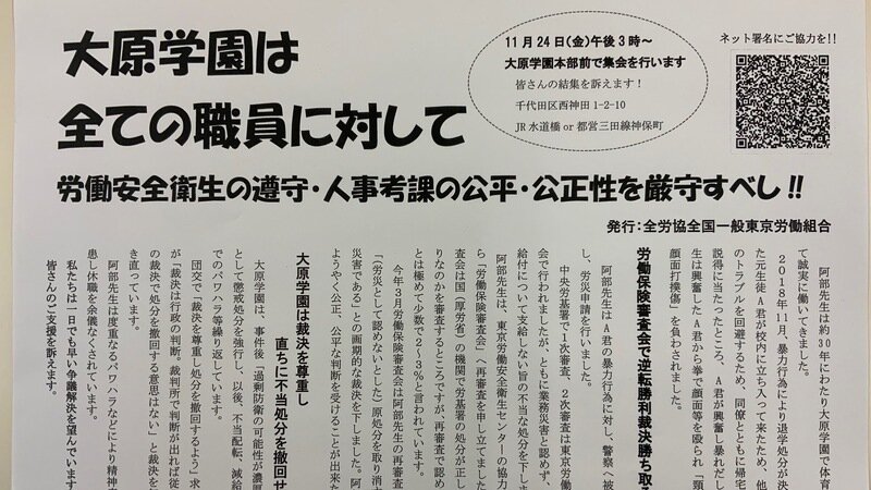 なお、下記の通り抗議集会を学園本部前にて行います。