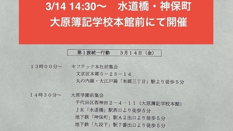 大原学園のガバナンス改善を求める4回目の集会を下記のとおり行います。