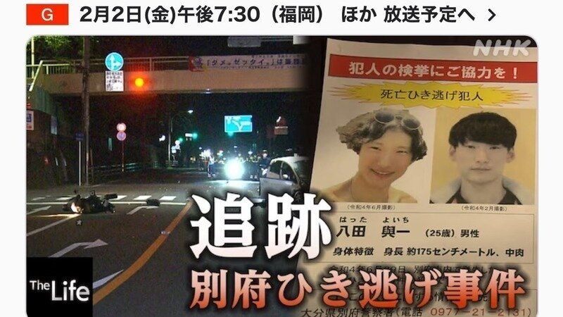 NHK総合 ザ・ライフ「追跡 別府ひき逃げ事件」