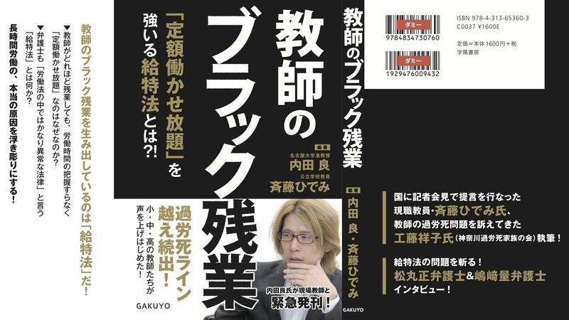 6/7、内田良先生や工藤祥子さんとの共著本『教師のブラック残業〜「定額働かせ放題」を強いる給特法とは?!』が発売しました。