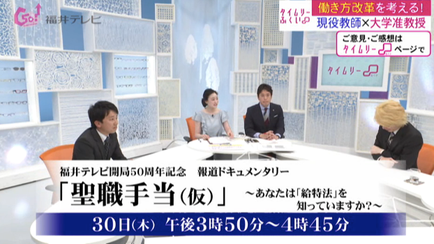 福井テレビ「聖職手当(仮)〜あなたは「給特法」を知っていますか?〜」