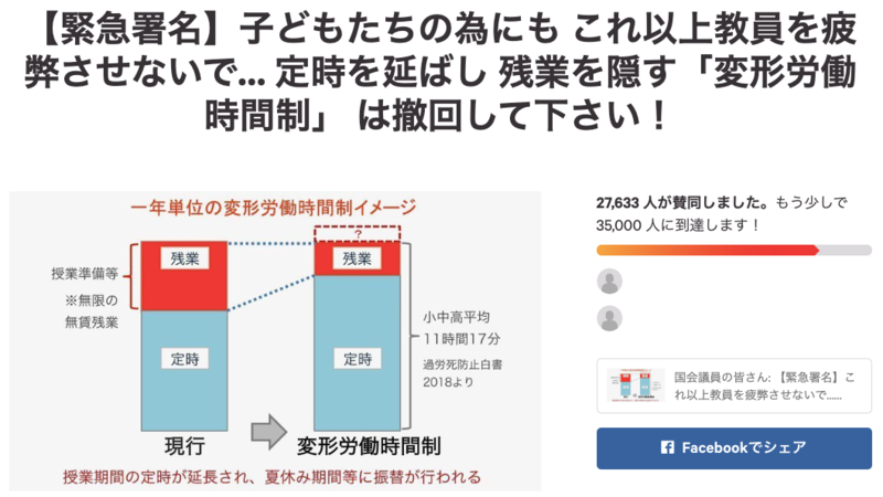 変形労働時間制は給特法の改悪 現職教員が反対署名
