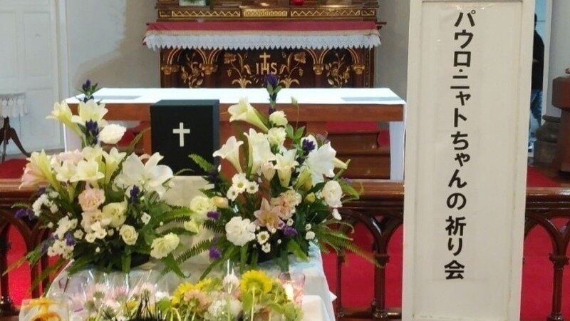 2024年7月14日午後3時から午後4時まえまで、熊本市中央区手取にあるカトリック手取教会で、技能実習生グエットさんの死産した子(パウロニャトちゃん)の祈り会が、ベトナム人100名以上と日本人支援者ら20名以上の合計120名以上人々が参加して行われました。 グエットさんも参加し、死産した子への祈りと弔いを行いました。