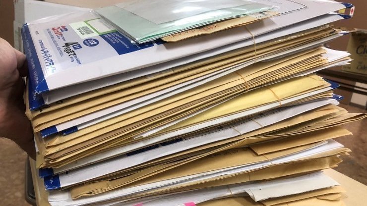 写真=毎日届く署名の束。15日以降は1,000通/日に。激励の手紙も添付され、心が温かくなります。