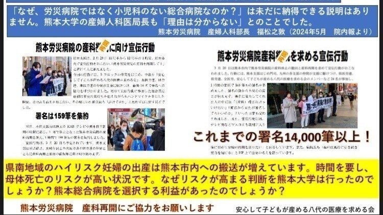 安心して子どもが産める熊本県南の周産期医療体制を求めます