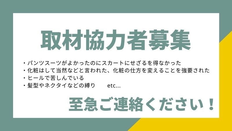 急なお願いで申し訳ないのですが、上記条件に該当する方で取材可能な方は、取り急ぎ(早ければ早い程助かります…!)、私たちの連絡フォームまで一言頂けると幸いです。
