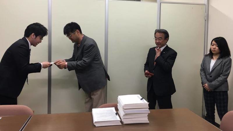 こうした署名の提出については、国会議員の取り付けがないと難しいことから超党派議員連盟である原発ゼロの会共同代表の近藤昭一議員の協力を