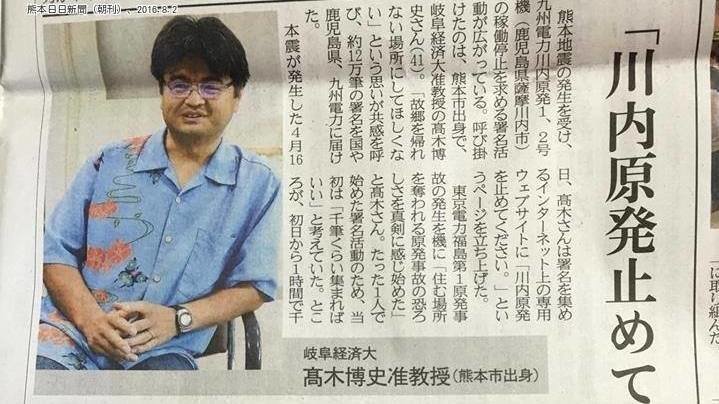 熊本日日新聞は、地方紙ながら熊本県で最もシェアの高い新聞であり、これに掲載されたことは意義のあることだと思います。