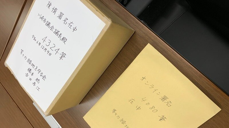 本日12/9(月)、川崎市議会に陳情署名4324筆、オンライン署名4080筆を陳情書を添えて提出してきました。(どちらも12/6時点の集計となります)皆さんの強い思いが等々力緑地再編整備計画の見直しに向けて川崎市やとどろきパーク(株)に伝わってほしいと思います。