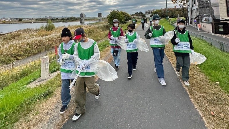 先月、実験スペースのある多摩川の清掃活動に川崎市北部スケートボード協会や友達のスケーター皆んなで参加して、地域の人と一緒に河原を歩いてゴミ拾いをしました。