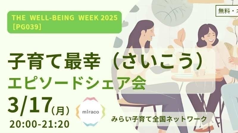 みらい子育て全国ネットワーク(miraco)では、「子育てのWELL-BEINGを語ろう」をテーマに「THE WELL-BEING-WEEK 2025」にてワークショップを行います。