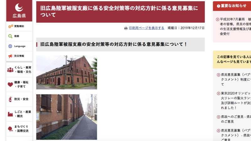 旧広島陸軍被服支廠に係る安全対策等の対応方針に係る意見募集について