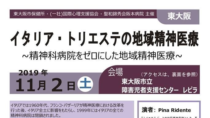 参加できそう。11/2【イタリア・トリエステの地域精神医療〜精神病院をゼロにした地域精神医療〜】2019年11月2日東大阪市立障害者センター レピラにて