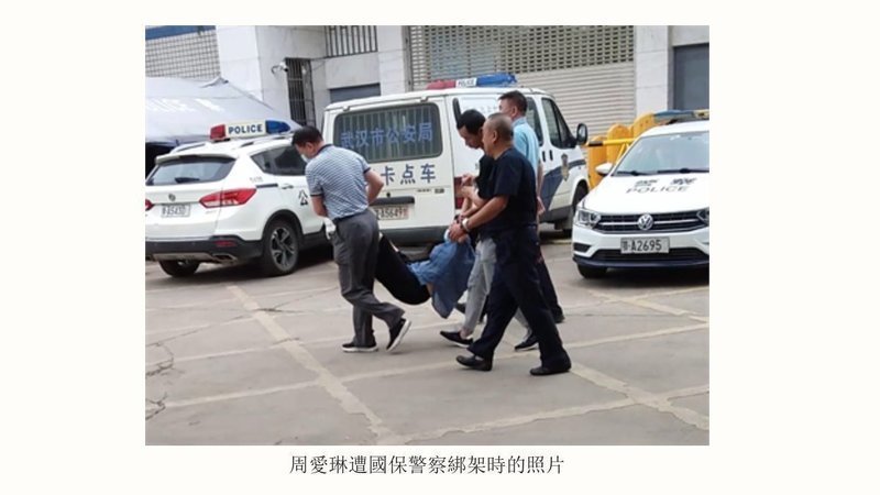 二零二一年七月二十九日,周愛琳在武漢市漢正街講法輪大法真相時,被三個大學生惡告,疫情期間中共警察沒動。疫情剛一過,中共警察就把這事當案子來辦,調監控,找到周愛琳就綁架並非法拘留。九月二十九日非法拘留十五天期滿,周愛琳再次遭國保警察綁架,被劫持在武漢市礄口區額頭灣洗腦班迫害。