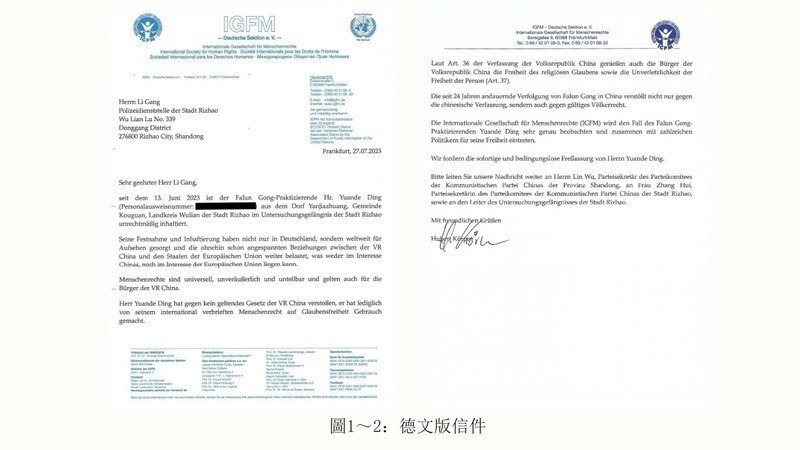 信的結尾寫道,「德國國際人權協會 (IGFM)將極為密切的關注法輪功學員丁元德先生的個人處境,並與眾多政治家一起,為他的人身自由矢志不渝的努力。我們強烈敦促您立即無條件釋放丁元德先生。」
