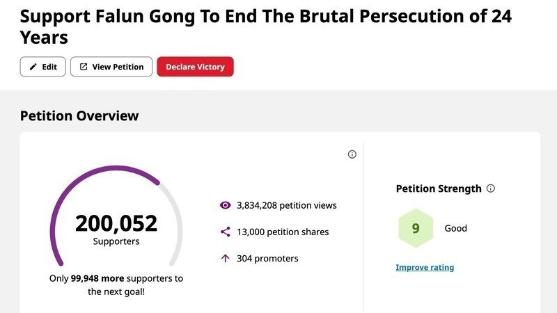 感謝大家的支持。 這份請願書現已獲得超過20萬個簽名。