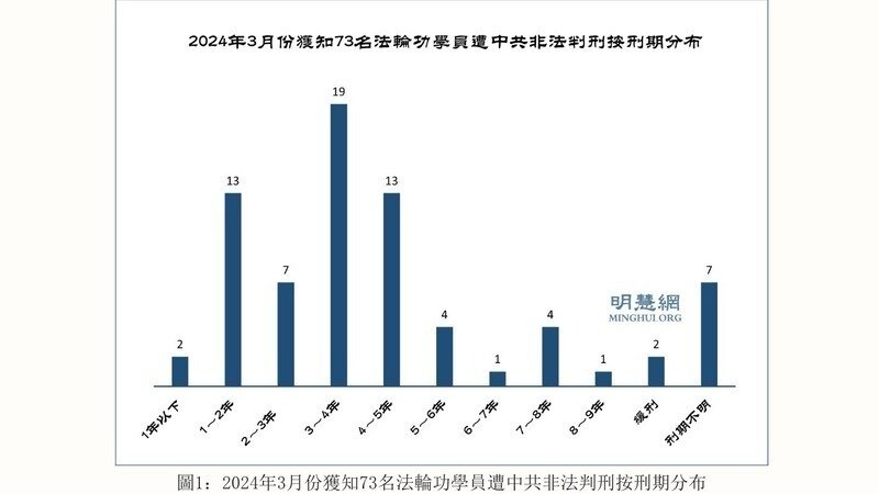 據明慧網報導統計,獲知三月份又有至少73名法輪功學員被非法判刑。
