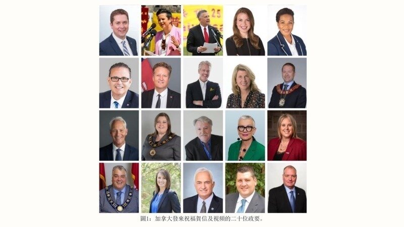 以下是加拿大二十位政要送來賀信和褒獎譯文。
