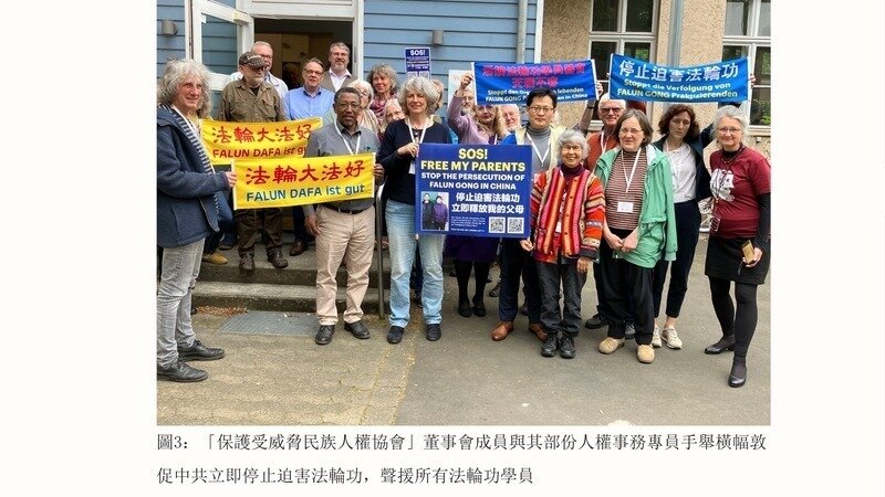 此前,「保護受威脅民族人權協會」已經強烈譴責了中共對山東省日照市法輪功學員大規模的迫害。二零二三年十一月二十七日,該人權協會首次發布德英雙語新聞報告,嚴厲譴責了日照市當局對法輪功學員大規模的綁架和對他們的非法庭審,新聞公告中指出:「對法輪功學員丁元德先生和其他法輪功學員的非法庭審跟非法抓捕他們的行徑是一樣的肆意妄為和荒謬,這個共產主義政權自己都清楚,對法輪功學員的迫害沒有任何的法律依據,這場偽法律鬧劇是中國政府二十四年來對法輪功學員無情鎮壓的一部份。」