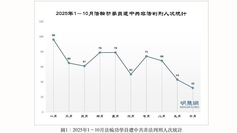 據明慧網報導統計,獲知今年十月份又有32名法輪功學員被非法判刑。