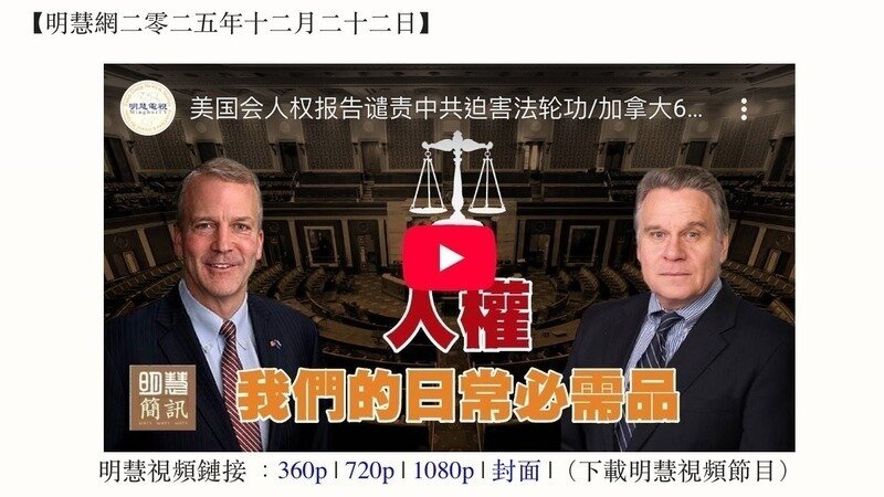 美國會人權報告譴責中共迫害法輪功/加拿大65位議員譴責中共跨國鎮壓/國際人 權日法輪功在美揭露中共迫害/德媒揭中共活摘器官/多國政要譴責中共活摘器官/法輪 功弘法(土耳其等8國)/河南好醫生被構陷