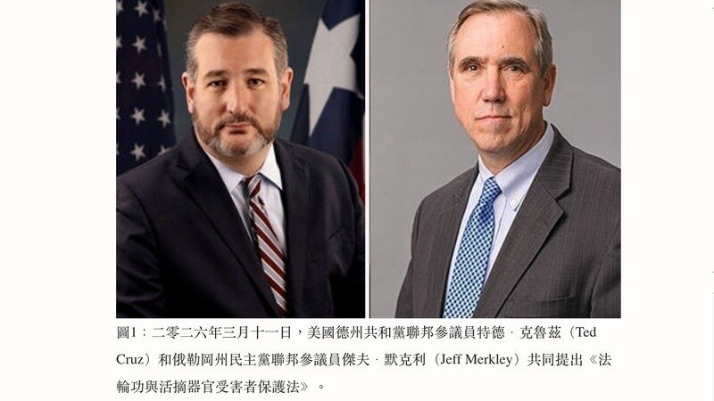 【明慧網】二零二六年三月十一日,美國德州共和黨聯邦參議員特德﹒克魯茲(Ted Cruz)和俄勒岡州民主黨聯邦參議員傑夫﹒默克利(Jeff Merkley)共同提出《法輪功與活摘器官受害者保護法》,遏制中共活摘器官罪行。