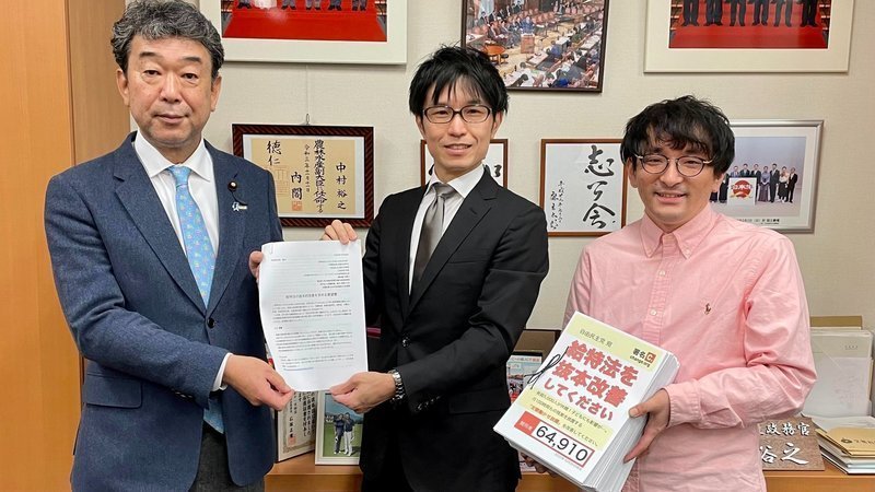 昨日10月27日、自民党文部科学部会長の中村裕之衆議院議員に、皆様からお預かりした署名64,910筆と、有志の会で作成した要望書を提出致しました。