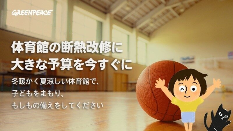 これまでわたしたちの署名についてもサポートしてくれた国際環境NGOグリーンピース・ジャパンが、学校の『体育館』の断熱改修を求める署名を開始しています。