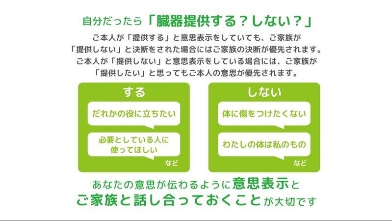 - 臓器提供をしたくない人こそ「No」って意思表示しておくべきなんだけど、意外とされていないようだし、尊重されることを知らないようです。