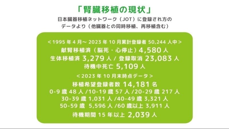 透析医療に年間何兆円も使ってる(※3)のでそれに関わる医療従事者を減らして移植へリソースを振り分けられないのかと極端な話しですけど。