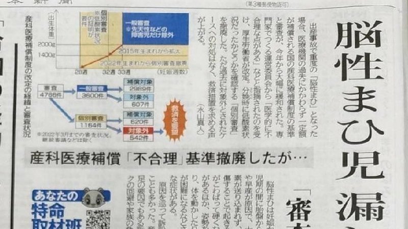 ①産科医療補償「不合理」基準撤廃も…脳性まひ児、漏れた救済 「審査済み」見直さず