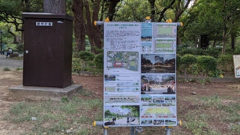 公園内にひっそりとたてられた工事看板によると