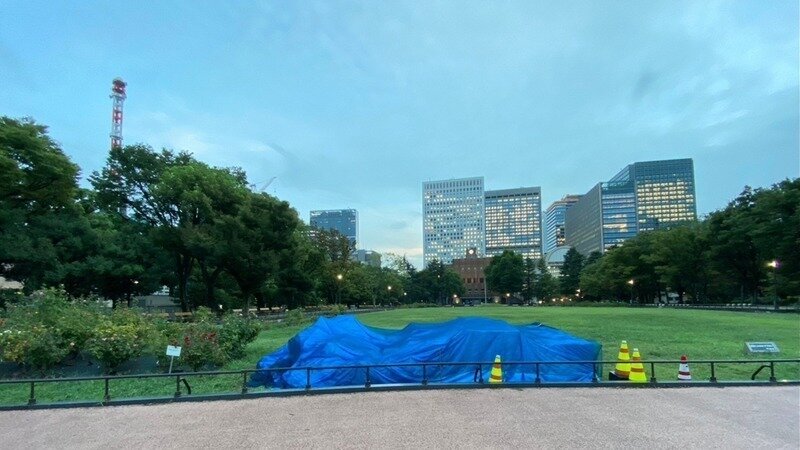 モダンな日比谷公園に不似合いのブルーシートに、