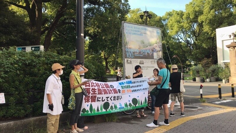 9月10日の午後日比谷口に集まり、公園の利用者や道を行く人々に、日比谷公園の危機をお伝えしました。