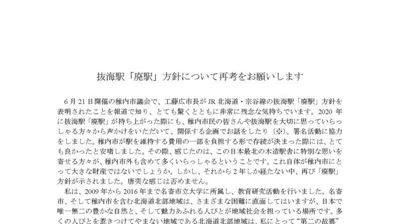 学術専門家の立場からも抜海駅の存続が支持されていることは、重く受け止める必要があると言えます。