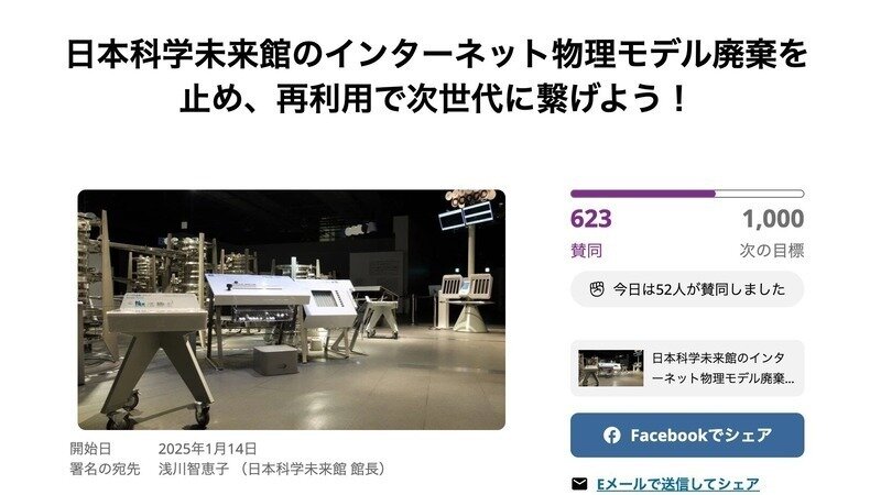 なお、日本科学未来館での廃棄ステータスが見えない中で、手探りでも、できる事をやっていくスタンスで動いておりますので、引き続き賛同者を集めるためのシェアや、ご意見やアドバイスがあれば、よろしくお願いいたします。
