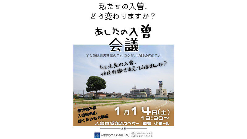 2018年(平成30年)入曽駅周辺整備事業開始に伴い開催された狭山市の住民説明会において、市の説明が不十分、相互的なやり取りができないなどの意見が参加者から出されたほか、そもそも説明会に参加できなかったとの声があることから、狭山市議会および両会が再三にわたり狭山市主催で住民と双方向のやり取りができる形での説明会の開催を要望してきました。しかし説明会の予定はないとの市の見解が昨年12月時点で示され、開催の見通しが立たないことから、入曽まちづくりの会および入間小のケヤキを未来につなぐ会が狭山市への公文書公開請求や関係者とへの聞き取り等により得た情報を基に、住民のみなさまと共に双方向のやり取りができる形での説明会を開催するものです。