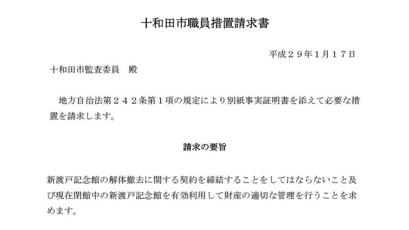 ★1月17日十和田市に提出した「住民監査請求」