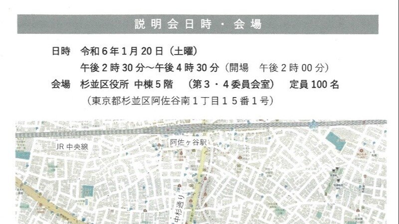 With the support for the Suginami ward, an information session to explain the construction plans of Tokyo Metropolitan Government's "Urban Planning River No. 8" will be held on January 20th (Saturday).