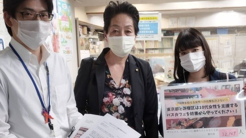 4月6日(木)午後、「Colaboと仁藤夢乃さんを支える会」メンバーで、新宿区にバスカフェ継続を求める署名および支える会声明を提出してきました!